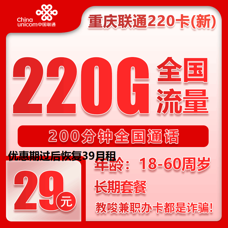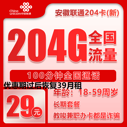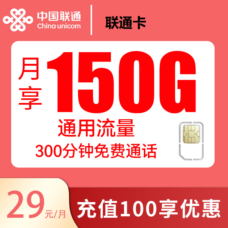 (只发广东)广东联通大流量卡29月租150G(四年资费)(限制18-30周岁)